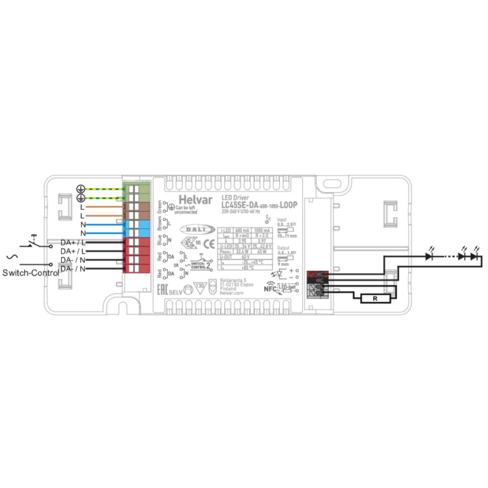 Helvar LC45SE-DA-600-1050-LOOP DALI-2 Dimmable LED Driver